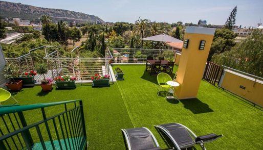 Tropical Tranquility Awaits at Apartamentos El Palmeral de Madaria Nestled within a lush 3,000-square-metre exotic palm garden, Apartamentos El Palmeral de Madaria offers a serene and stylish escape in Alicante. The property features 12 bright, modern apartments, each with a private terrace, and a range of relaxing amenities including an outdoor pool with hydromassage (open year-round), a heated Jacuzzi (available November–March), a gym, and a sauna. The Albufereta beaches are just a 5-minute drive away. Modern Comfort & Design Each air-conditioned apartment is decorated with contemporary furnishings and vibrant colours, creating a cheerful atmosphere. Amenities include a flat-screen TV, free Wi-Fi, and a fully equipped kitchenette with dishwasher and washing machine, offering all the comforts of home. Relaxation & Outdoor Living Guests can unwind in the spacious lounge area that opens to a terrace with beautiful garden views. The property also features a pine forest with a children’s play area and barbecue facilities, making it ideal for families. Convenient Location Situated just 8 minutes from Alicante city centre and 12 km from Alicante Airport, the apartments enjoy excellent transport links — with two bus lines connecting to downtown within a 5-minute walk. Several supermarkets and restaurants are also nearby. Parking & Accessibility Private on-site parking is available, and free public parking can be found in the surrounding area. Families especially appreciate the peaceful environment and convenient location, rating it 8.8 for family stays.