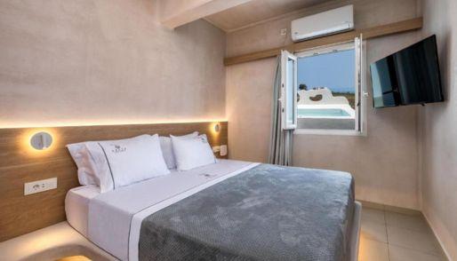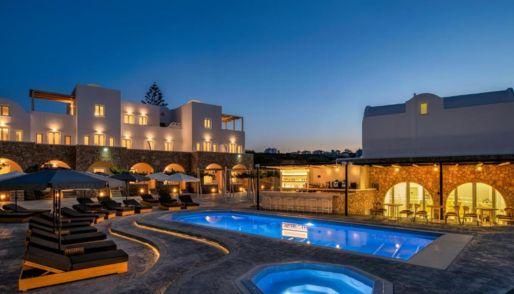 Elegant Accommodation Aelia Luxury Suites in Karterados offers a swimming pool with stunning views, a sun terrace, and a lush garden. Guests enjoy free WiFi throughout the aparthotel, ensuring connectivity during their stay. Comfortable Amenities The aparthotel features a restaurant, bar, and lounge. Additional facilities include a hot tub, beauty services, and a children’s play area. Free on-site private parking is available for guests’ convenience. Dining Experience A variety of dining options are available, including a family-friendly restaurant serving Greek, Italian, Mediterranean, and seafood cuisines. Breakfast options include continental and buffet with local specialities, fresh pastries, and more. Prime Location Located 3 km from Santorini International Airport, Aelia Luxury Suites is close to attractions such as Karterados Beach (2.3 km) and the Archaeological Museum of Thera (3.2 km). Boating and scuba diving are popular activities in the surrounding area. Families particularly like the location — they rated it 8.1 for a stay with kids.