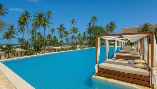Diamonds Mapenzi Beach: A Tropical Sanctuary on Zanzibar’s East Coast Idyllic Beachfront Setting: Nestled along the Kiwengwa shoreline, Diamonds Mapenzi Beach is surrounded by lush tropical gardens and swaying palm trees, offering a peaceful retreat on Zanzibar’s stunning east coast. Elegant Accommodations: The resort’s rooms are designed in a traditional East African style, featuring charming décor, spacious private patios, and mosquito-netted beds for a relaxing and authentic island experience. Exquisite Dining Options: Guests can indulge in a variety of culinary delights across the resort’s three restaurants. Ocean Reef Restaurant offers lavish buffet-style meals and themed nights each week. Nakupenda Pizzeria serves freshly made pizzas and crisp salads in a relaxed setting. Suli-Suli Restaurant features an à la carte menu for intimate seaside dining. Leisure & Activities: Guests can unwind by the sparkling swimming pool, pamper themselves at the on-site spa, or enjoy thrilling water sports. The resort’s excursion desk also arranges local tours and safaris to Tanzania, providing adventure beyond the beach. Convenient Location: Located just 45 km from Stone Town International Airport, the resort offers easy access while maintaining a tranquil, private atmosphere. Family-Friendly Escape: Families particularly appreciate the resort’s serene beachfront setting and welcoming ambiance — they rated it 8.9 for a stay with kids. Diamonds Mapenzi Beach combines authentic Zanzibari charm with modern comfort, making it an ideal destination for couples, families, and travelers seeking a luxurious island getaway.