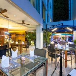 Housed in sleek modern architecture just off Sukhumvit Road, Radisson Suites Bangkok Sukhumvit offers spacious, air-conditioned rooms with 32-inch flat-screen TVs and complimentary Wi-Fi. The property features a rooftop pool, fitness centre, and cozy coworking spaces for guests’ convenience. The hotel provides free shuttle service to Nana BTS Skytrain and Sukhumvit MRT Stations, ensuring easy access to popular areas such as Siam Paragon and Silom Patpong, located just 5 km away. Elegant rooms with floor-to-ceiling windows showcase contemporary décor and are equipped with a laptop safe, tea/coffee maker, and modern bathrooms featuring rain showers and premium toiletries. Guests can unwind at the rooftop spa pool, enjoy rejuvenating massages, or seek assistance from the concierge desk for travel arrangements. Dining options include the interactive Mauve Restaurant serving international cuisine, Asqu Café offering fresh coffee and light bites, and the Michelin-recommended Punjab Grill, known for authentic Indian fine dining. The newly opened Holli Bolli rooftop bar provides a stylish setting for evening drinks and relaxation. Families particularly like the location — it has been rated 8.4 for family stays.